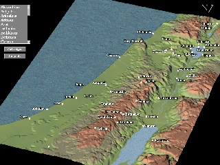 Das Land, in dem Jesus lebte. 3D-Reliefkarte aus verschiedenen Perspektiven. Suchfunktion zu den einzelnen Orten. Informationen über die Bedeutung der Orte für die Geschichte und für das Leben Jesu.